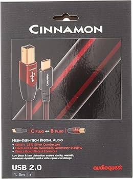 The AudioQuest Cinnamon USB-C to USB-B Data Cable delivers high-end performance for connecting modern USB-C devices to USB-B components such as DACs, audio interfaces, printers, and other peripherals. Designed for superior signal integrity, the Cinnamon series features 1.25% silver-plated solid conductors that reduce distortion and enhance clarity—making it an excellent choice for high-resolution audio systems and demanding digital workflows.