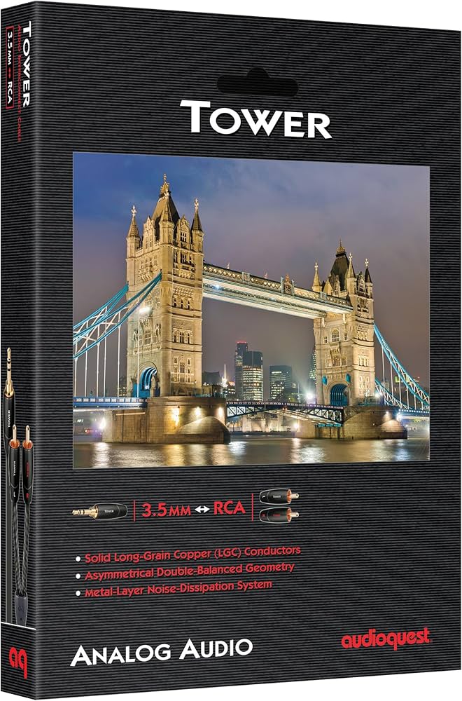The AudioQuest Tower 3.5mm Mini to RCA Interconnect Cable is designed to deliver clean, natural, and highly accurate sound when connecting portable or computer-based audio sources to home audio systems. Engineered with AudioQuest’s commitment to high-quality materials and low-distortion performance, the Tower cable provides a significant upgrade over standard auxiliary adapters.