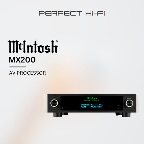 The McIntosh MX200 is a high-end 11.2 channel A/V processor offering 8K video pass-through, immersive Dolby Atmos/DTS:X audio, and advanced Dirac Live room correction, replacing the MX100 with enhanced HDMI 2.1 support for 4K@120Hz/8K@60Hz, HDR (Dolby Vision, HDR10+), and 4:4:4 color, featuring balanced audio outputs and a dedicated MM Phono input for premium home theater experiences.